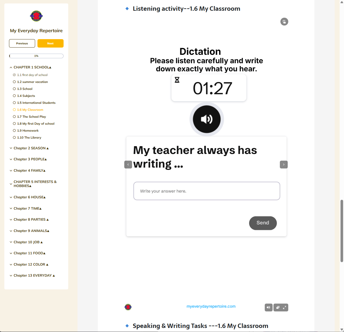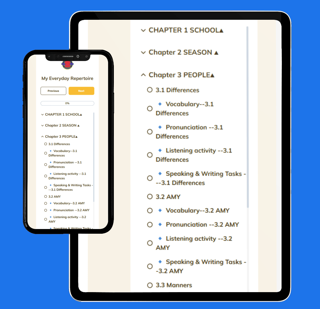 Talk about school life, subjects, teachers, routines, and your experiences. Develop listening & speaking around familiar topics.