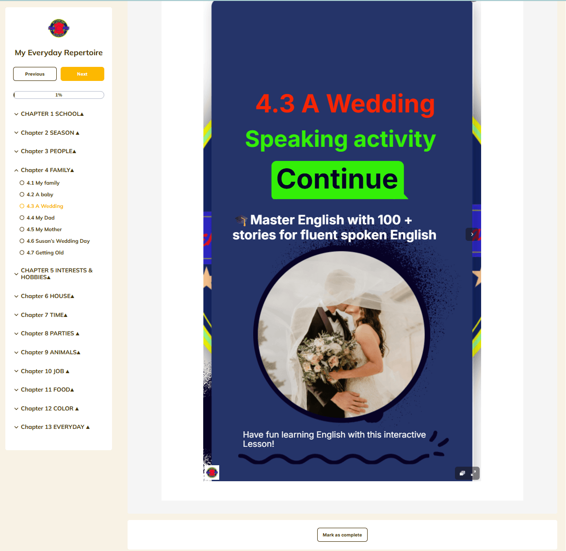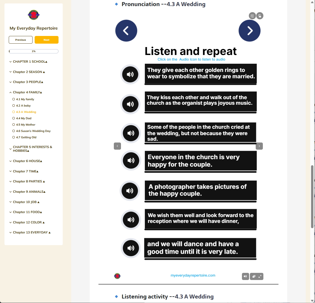 200+ interactive lessons, audios, and speaking exercises that train your ear to understand real English — even if you’ve struggled for years.